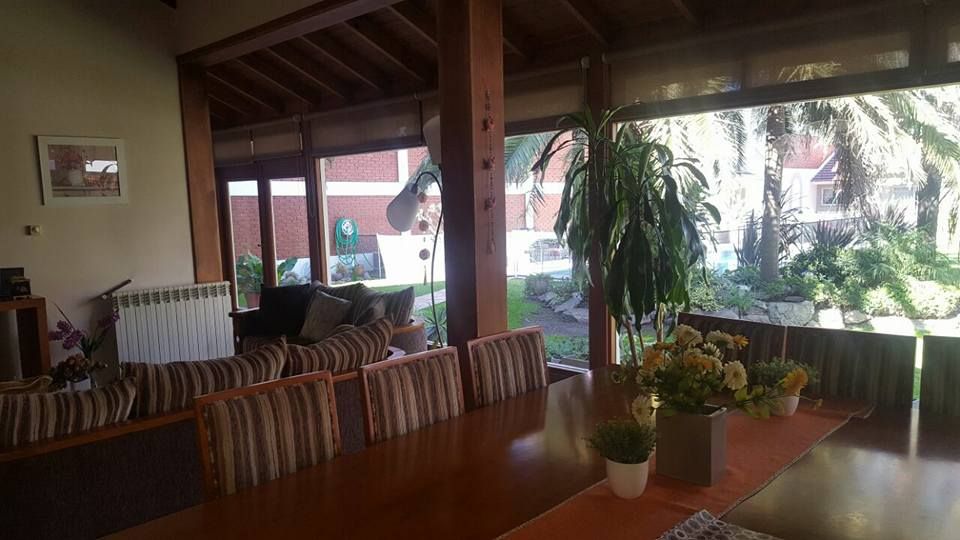 P.B:  SALON DE RECEPCION  CON COMEDOR Y VENTANALES DE DOBLE VIDRIO AL GRAN JARDIN CON ACCESO A LA COCINA  QUE TIENE MUEBLES BAJOS Y ALACENAS DE MELAMINA MODERNA Y MESADA DE GRANITO .