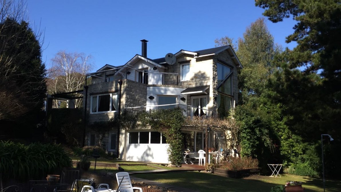 CASA EDIFICADA EN TRES PLANTAS. EN UN PREDIO DE DOS LOTES UNO AL LADO DEL OTRO, CADA UNO DE 20X40 OSEA 40X40 METROS UN TOTAL DE 1600 METROS. EN UN LOTE ESTA LA CASA Y EN EL OTRO LA PISCINA. GAS NATURAL Y AGUA CORRIENTE .CONSTRUCCION PROPIA DE LA ZONA CON PAREDES DE PIEDRA DE GRAN DISEÑO ARQUITECTONICO