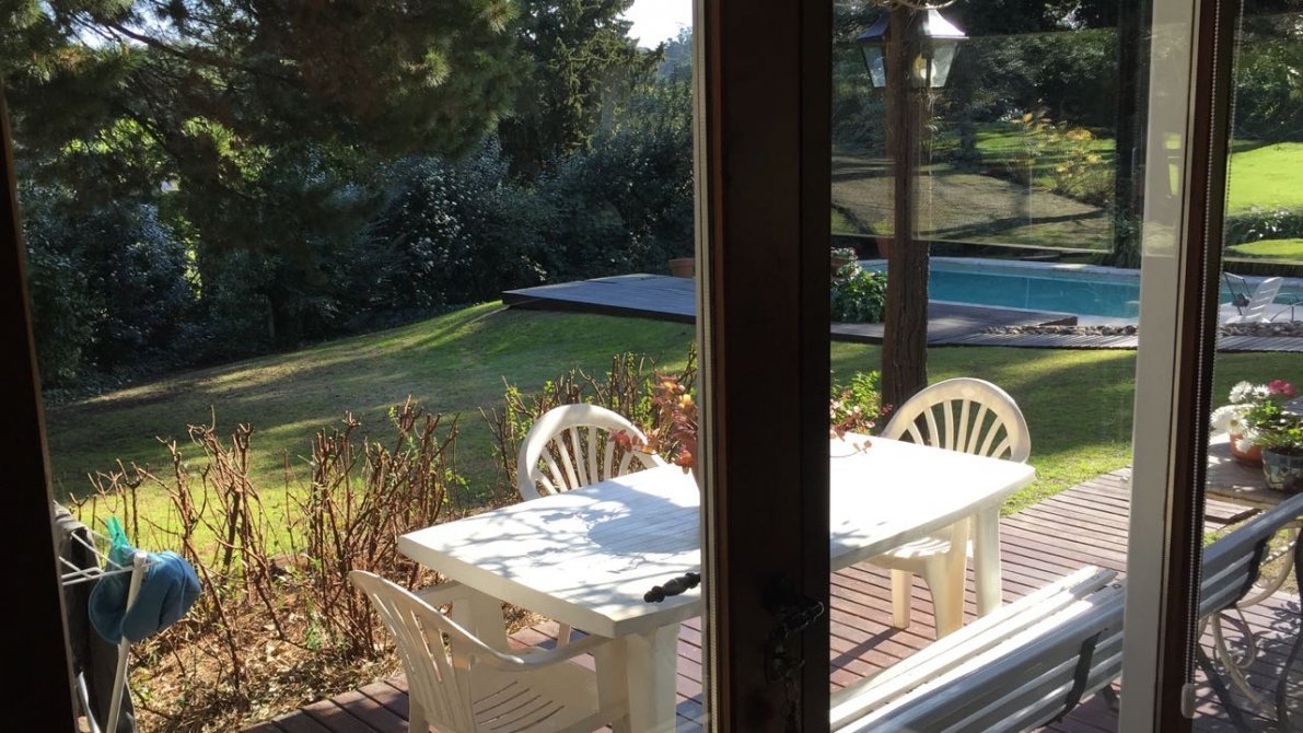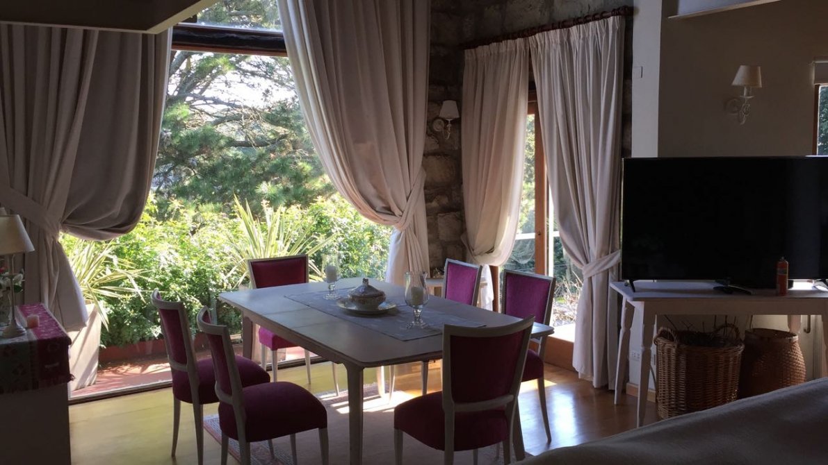 COCINA COMEDOR DE ESTILO AMPLIO CON VENTANALES AL PARQUE, VIDRIOS DE PANELES ENTEROS, LOS TRES BAÑOS DE CATEGORIA, LIVING AMPLIO CON ESTUFA A LEÑOS.