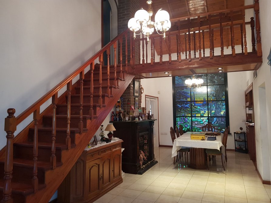 PLANTA ALTA, SE INGRESA POR ESCALERA DE MADERA MACIZA LUSTRADA CON BARANDA TIPO MIRADOR AL FRENTE Y CONTRAFRENTE. ACCESOS A DORMITORIO O ESCRITORIO CON PLACARD A MEDIDA Y PISOS DE MADERA LUSTRADA.