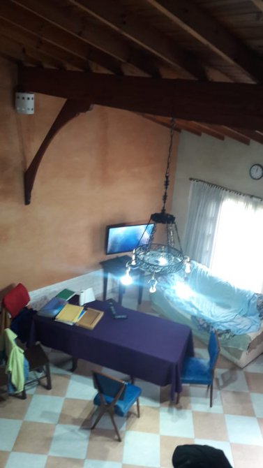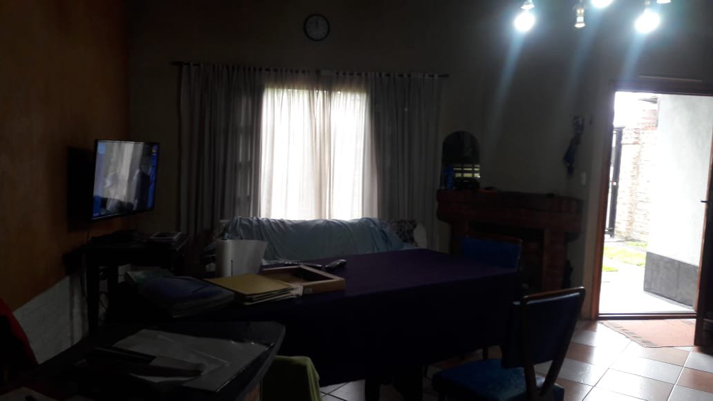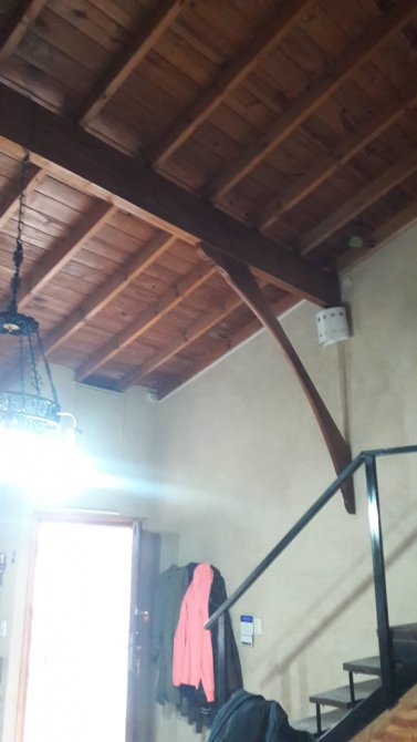 La casa esta retirada de la línea municipal a 6 metros aprox. Tiene rejas y porton automatizado. La casa se encuentra en excelente estado de conservación, completamente pintada y con todos los servicios (menos agua corriente, todavía no pasa por la zona). El terreno es de 363 m2 (8.66 x 43 m aprox) y la ocupación de la construcción es de 120 m2, el chalet consta de 152 m2 cubiertos, divididos en dos plantas. Techos de madera a la vista barnizados y en muy buen estado.