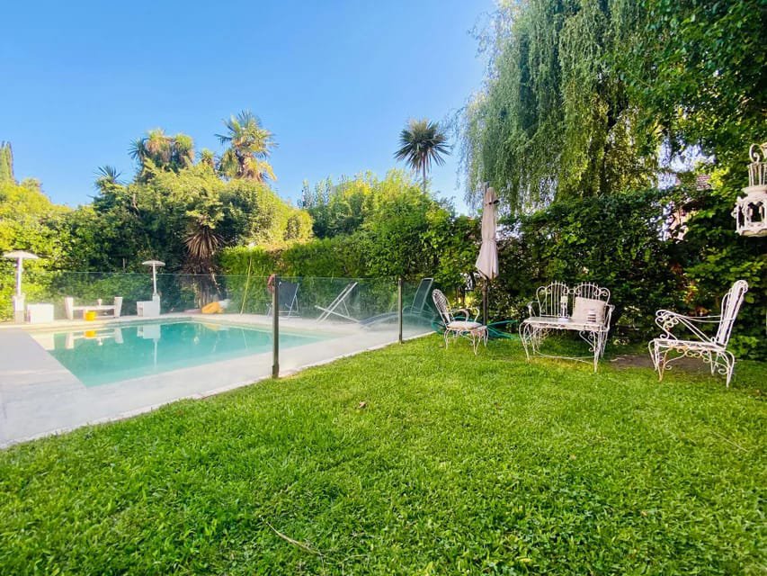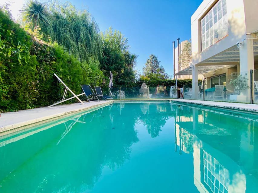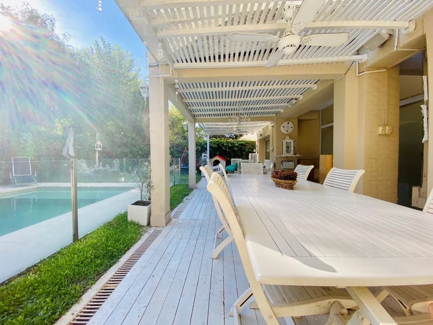 EN EL EXTERIOR GALERIA CUBIERTA CON PARRILLA COCINA Y HORNO EMPOTRADO A GAS NATURAL, PILETA DE NATACION DE MATERIAL CLIMATIZADA CON PROTECCION DE VIDRIO.