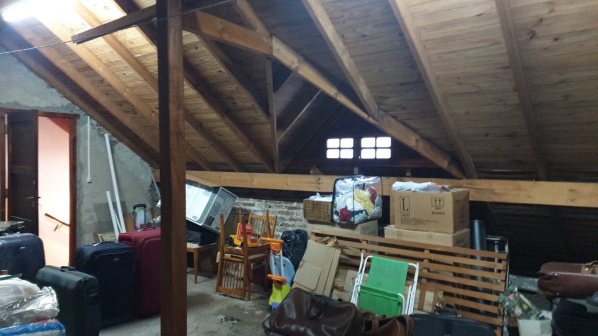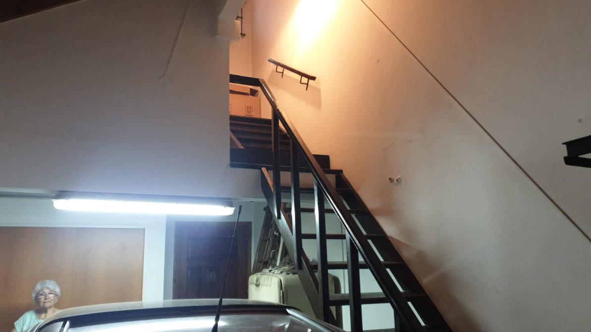 ENTRADA CUBIERTA DE GARAGE .ESCALERA A UN GRAN ENTRETECHO QUE SIRVE DE PLAYROOM O DORMITORIO.