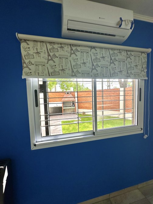 Ventanal con vista al patio, ofreciendo gran luminosidad y equipado con cortina roller.