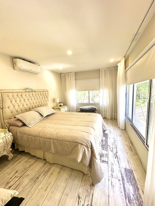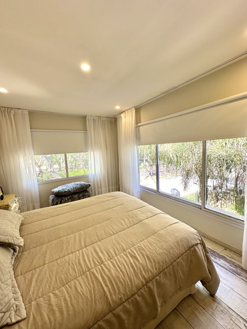 La propiedad ha sido construida con materiales de primera calidad, incluyendo terminaciones con revear y microcemento. Además, cuenta con estufas de tiro balanceado, aires acondicionados, toldo motorizado a control remoto, y sistema de cámaras de seguridad.