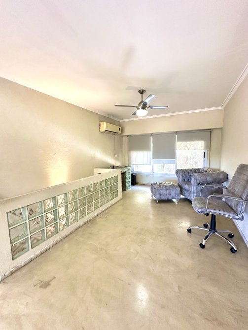 Planta Alta: Escalera flotante que da acceso a un star/ recibidor con un gran ventanal a la parte exterior baño completo, y dos dormitorios, con placard.
