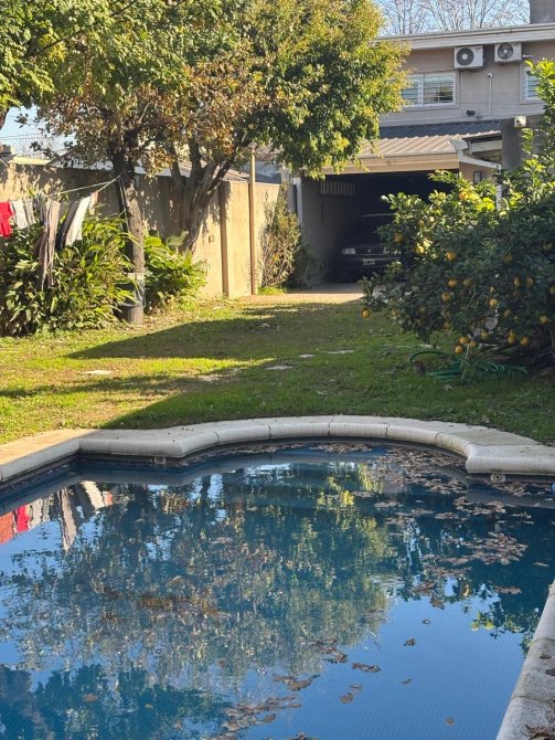 Amplio jardín con pileta de natación revestida en venecitas, con bomba presurizadora, sistema de