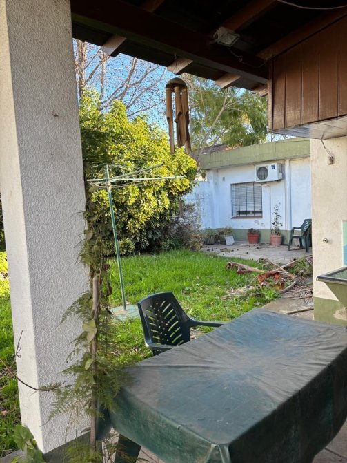 portón. En la parte posterior, un amplio jardín trasero brinda posibilidades de ampliación. La vivienda se ubica sobre una