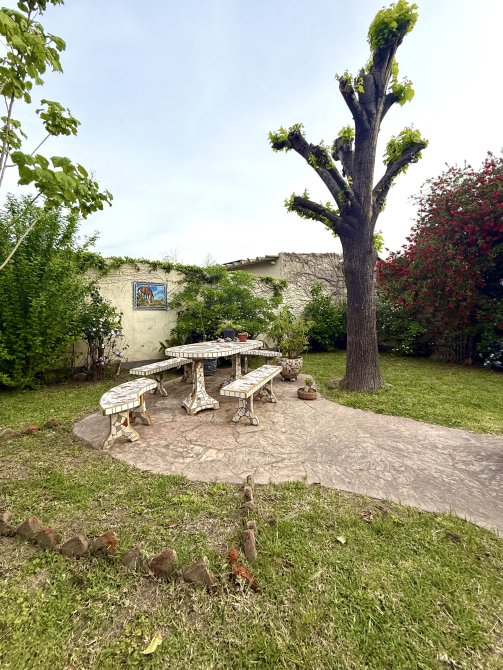 En el fondo se encuentra un galpón y una pileta, brindando un entorno perfecto para el descanso y el esparcimiento familiar.