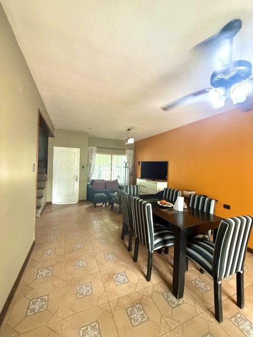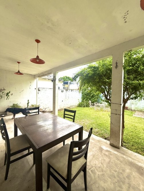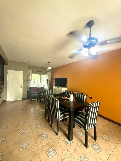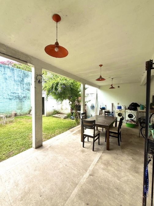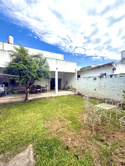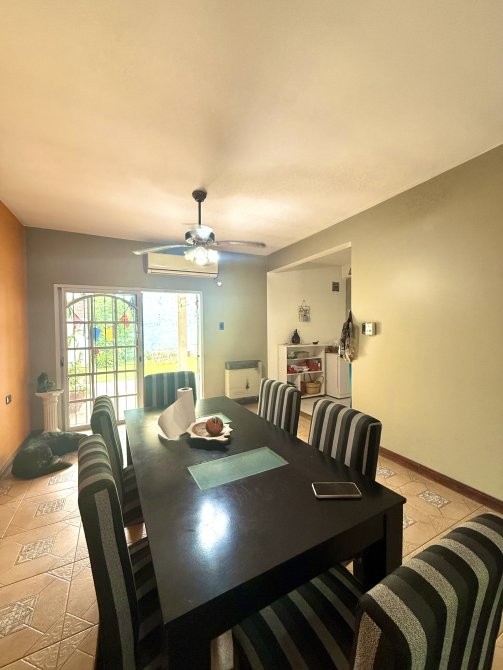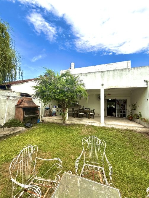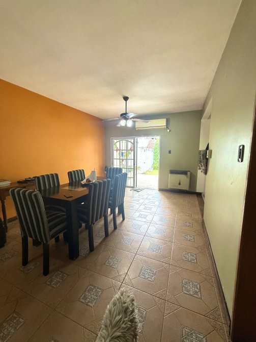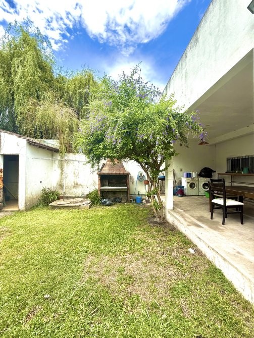 En planta baja dispone de garage cubierto con comunicación interna, living-comedor, cocina integrada, toilette y salida al patio trasero. El sector exterior se compone de jardín, parrilla, galería descubierta y un espacio de guardado tipo galpón, conformando un área funcional para uso recreativo y de servicio.