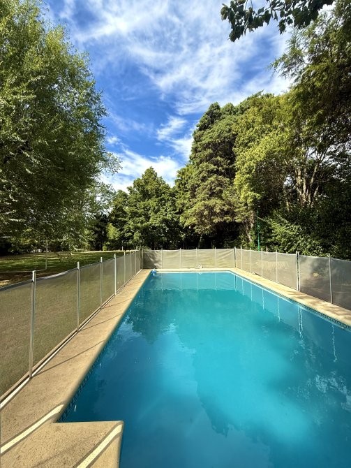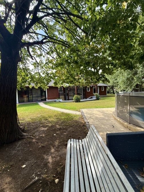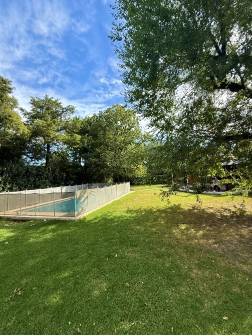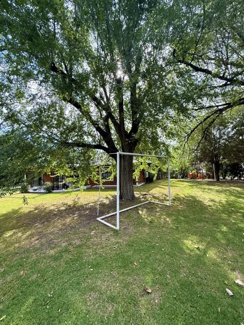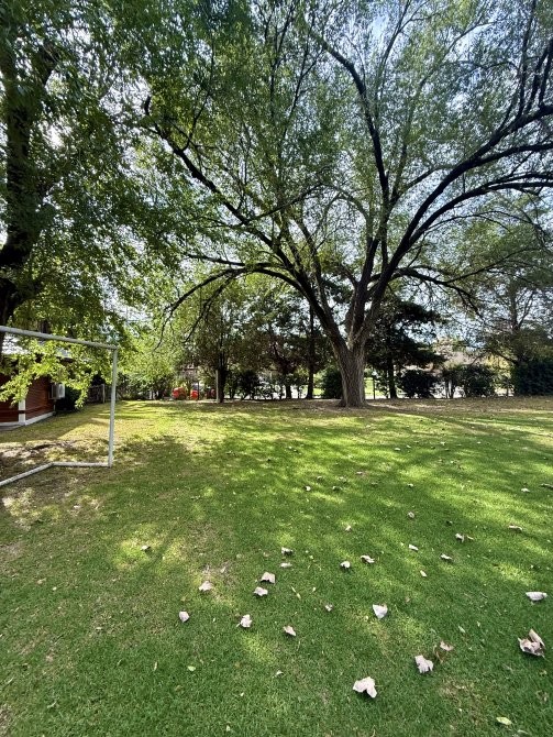 El parque es uno de los grandes atributos de la propiedad: amplio, arbolado y con vegetación consolidada que brinda privacidad y un entorno sumamente agradable. En el jardín se encuentra una piscina de material pintada, de aproximadamente 10 x 4 / 10 x 5 metros, equipada con su correspondiente sistema de filtrado y red de protección perimetral, ideal para el disfrute familiar y recreativo.