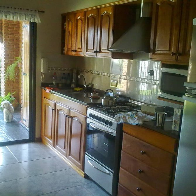 PLANTA BAJA: ENTRADA SOCIAL. LIVING COMEDOR AMPLIO . COCINA CON MUEBLES BAJOS Y ALACENAS DE LA.MEJOR MADERA LUSTRADA.