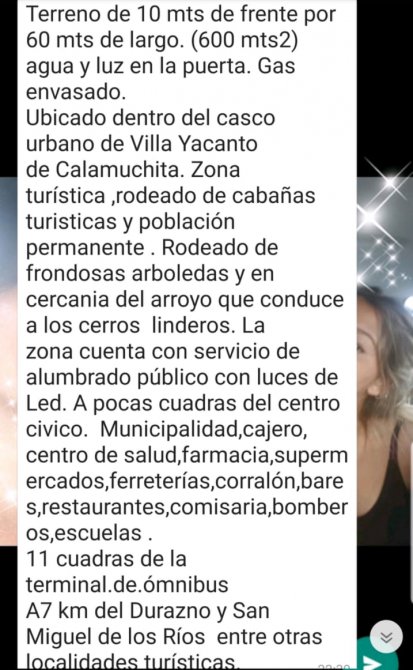 Hermoso Lote de 10 metros de frente x60 metros de fondo, total de 600 metros cuadrados ubicado dentro del casco de Villa Yacanto Calamuchita.