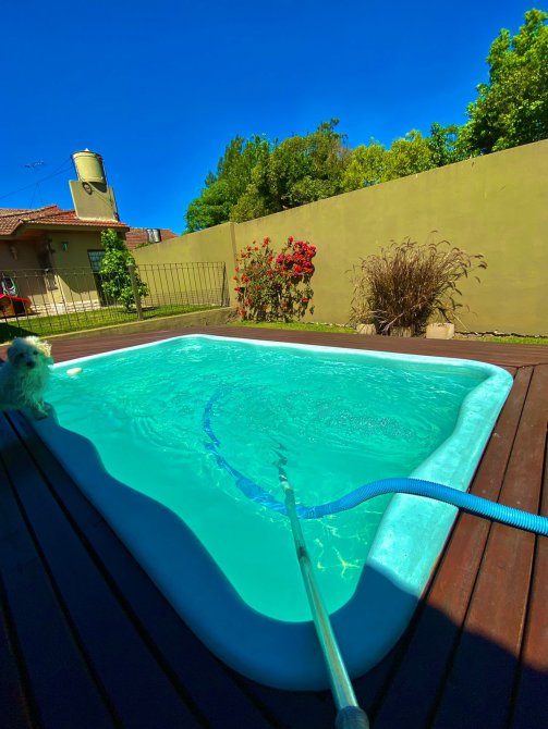 JARDIN/ PILETA FAMILIAR SOBRE DECK/ QUINCHO AMPLIO CON PARRILLA Y PILETA DE LAVADO Y MESADA.