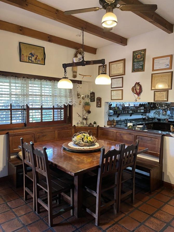Por el pasillo desde la puerta de entrada se accede a un toilette con doble compartimiento y al fondo el comedor diario que tiene puerta vaivem al comedor principal y pasaplatos a la cocina, que se encuentra en la derecha.