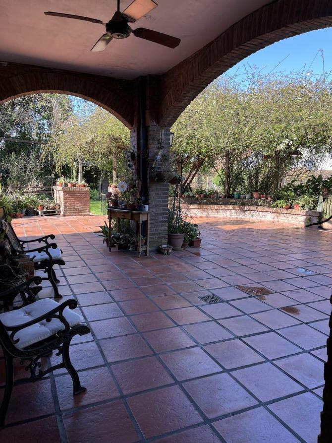 Sigue un sector de frutales ( limonero, pomelo, palta, higuera etc) , un galpón con invernadero ( techo de chapa traslúcidas) y planta alta con taller. A continuación, la quinta y un canil doble. Jardín con árboles