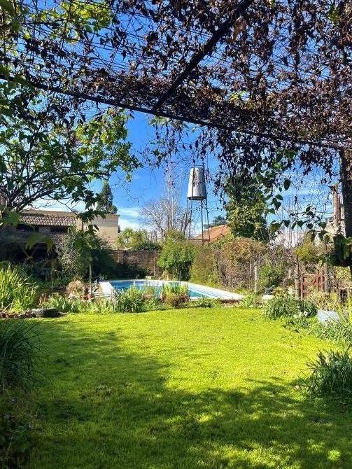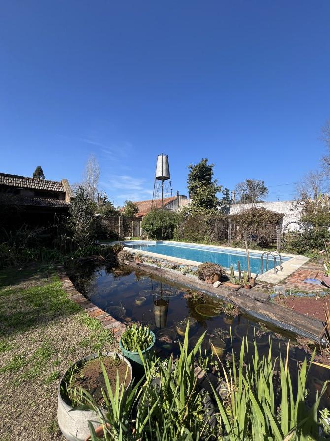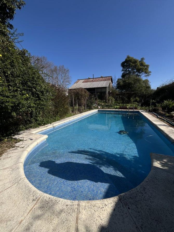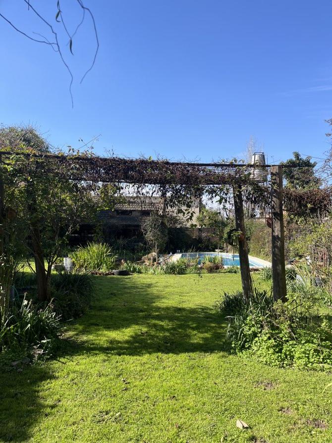 La entrada opuesta a la casa lleva a un quincho con parrilla, dos vestuarios ( con ducha y agua caliente) y a continuación, una pileta aranzay de (9x4 mts)