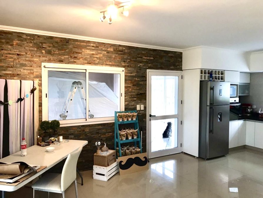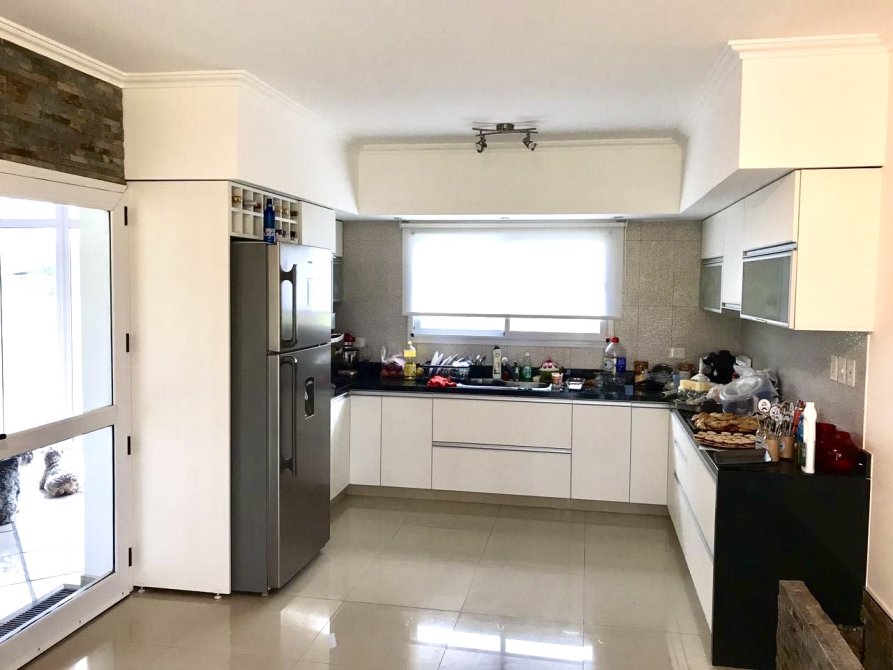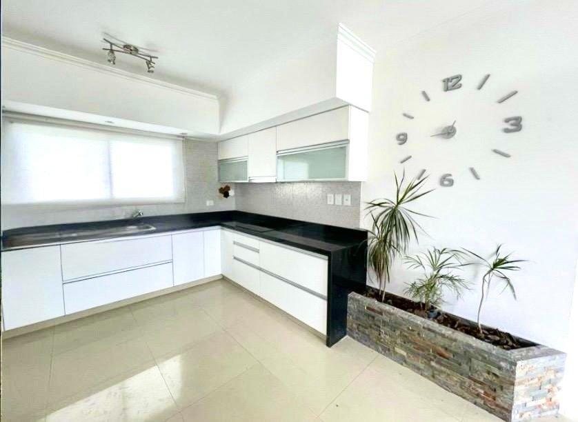 Cocina de 25 m² completamente equipada, con mobiliario de primera línea, anafe y horno eléctrico empotrados, extractor embutido y mesadas en mármol negro. Pisos de porcelanato y equipos de aire acondicionado frío/calor.