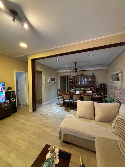 • Comedor integrado, con pisos combinados en porcelanato y madera tarugada, generando un ambiente cálido y elegante.