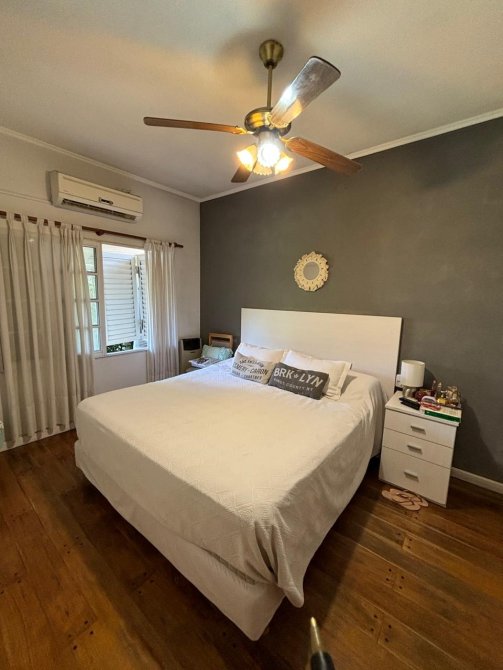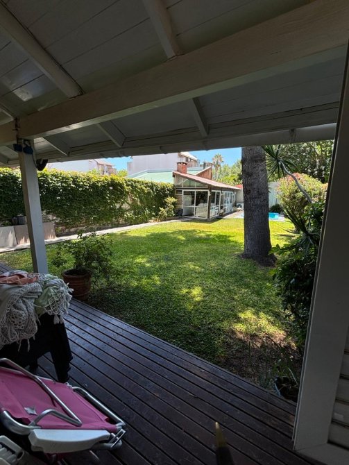 La propiedad cuenta con una galería semicubierta con vista al parque, ideal para disfrutar del entorno verde.