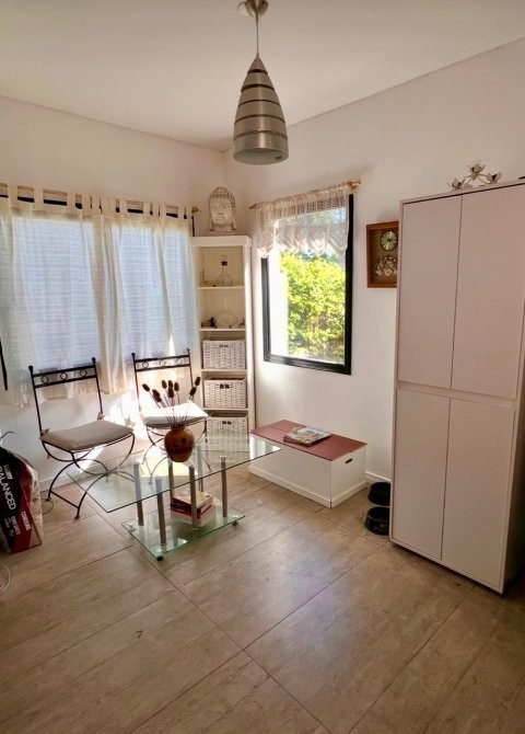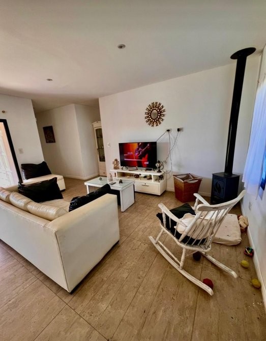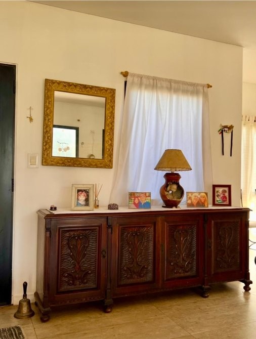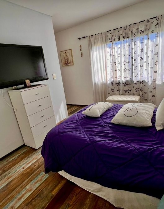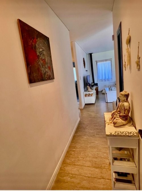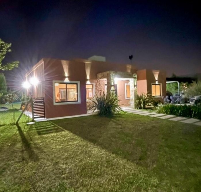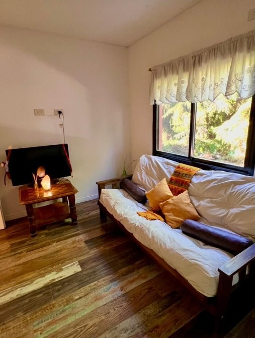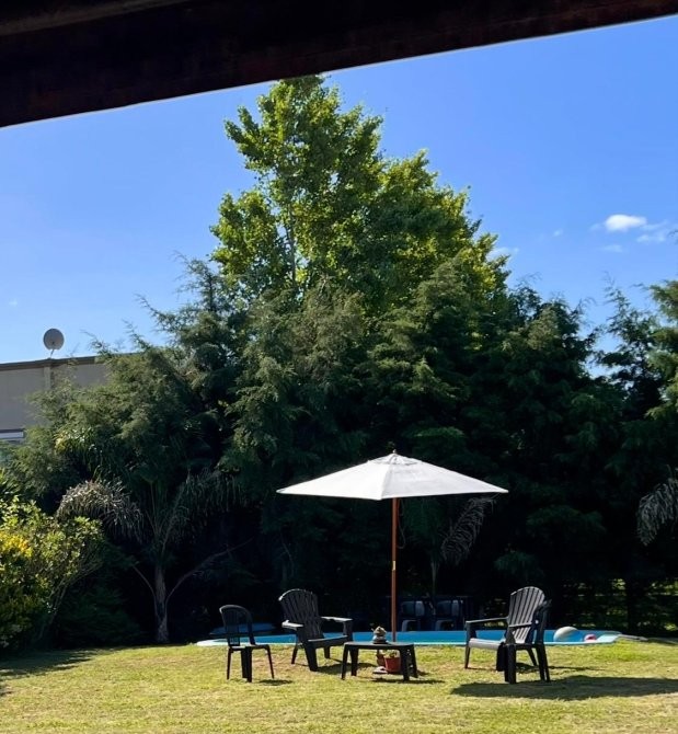 Dispone además de salamandra a leña, equipos de aire acondicionado frío/calor, lavadero independiente, quincho cubierto, parrilla y una cómoda pileta. En el exterior se destaca el baño y ducha externos, la cochera cubierta para dos vehículos y un cerco vivo frondoso con pinos y vegetación consolidada, que otorga privacidad y un entorno natural.